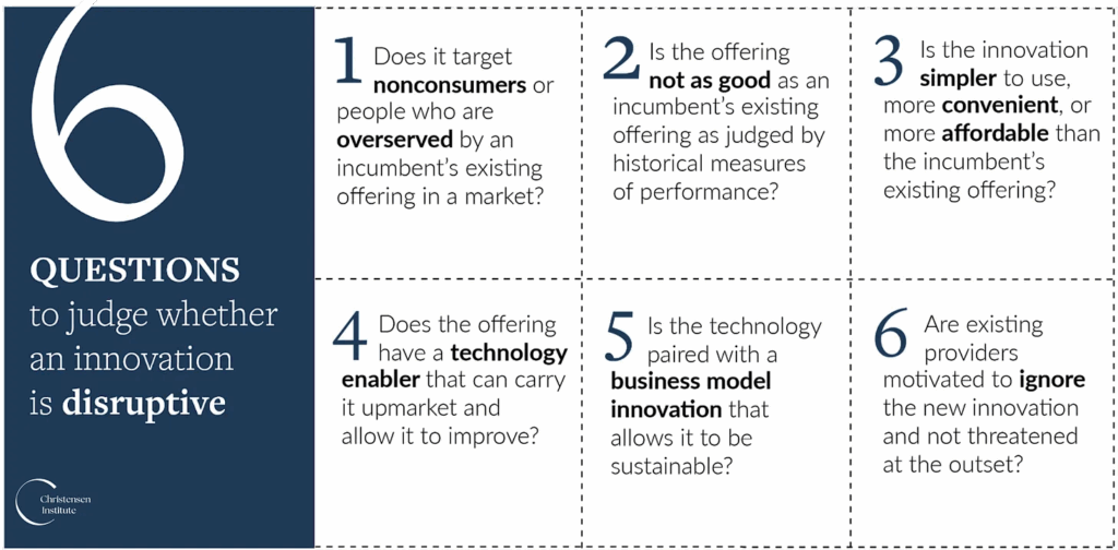 If AI is going to “disrupt health care,” we need to specify which business model powered by AI poses a disruptive threat, and what it’s disrupting. That’s important because disruption is relative. (See below for our 6-question test to assess disruptive potential.)