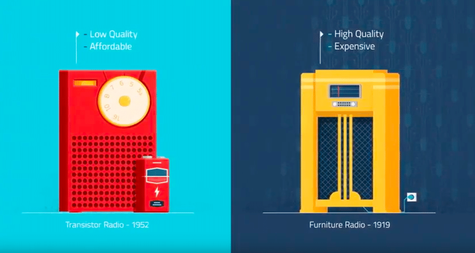 Slowly but surely, as transistor technology improved to make bigger and better radios, Sony was able to compete head-on with industry leaders, eventually resulting in their disruption.